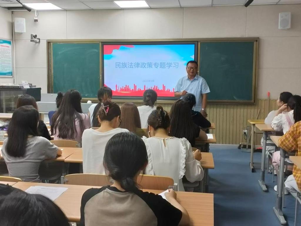 为深入贯彻党和国家关于民族工作的政策方针,加强爱国主义教育,铸牢中华民族共同体意识,Bwin必赢网址于9月7日在113教室举办了民族法律政策专题学习活动。